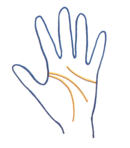 • Van boven naar beneden zie je een voorbeeld van de Hartlijn, de Hoofdlijn en de Levenslijn. Daarnaast zijn er nog veel meer lijnen en varianten op dit thema.