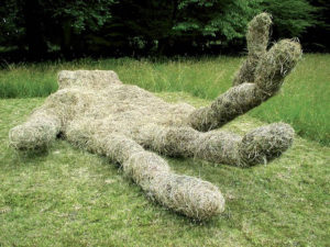 Een prachtige hand gemaakt van hooi (7,5 meter) tijdens het Landart Festival met het thema Vrede in het Gellerpark in Basel in 2005. De hand stelt het gebaar van vrede geven en vrede vragen voor.
